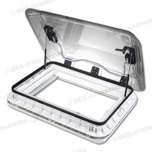 Cupola trasparente light gray e telaio bianco Trafic White (RAL 9003).