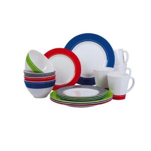 here. A complete place setting per color: red, lime green, blue,