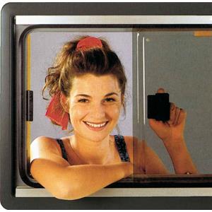 Finestre scorrevoli con maniglie ad incastro antieffrazione, complete per caravan e camper, già pronte per essere installate, con doppio vetro acrilico, tenda oscurante e zanzariera a rullo integrate. Eccellente isolamento termico. Pratico comando centrale, da azionare con una sola mano, che permette di unire zanzariera e tenda oscurante. Facile da regolare in diverse posizioni.